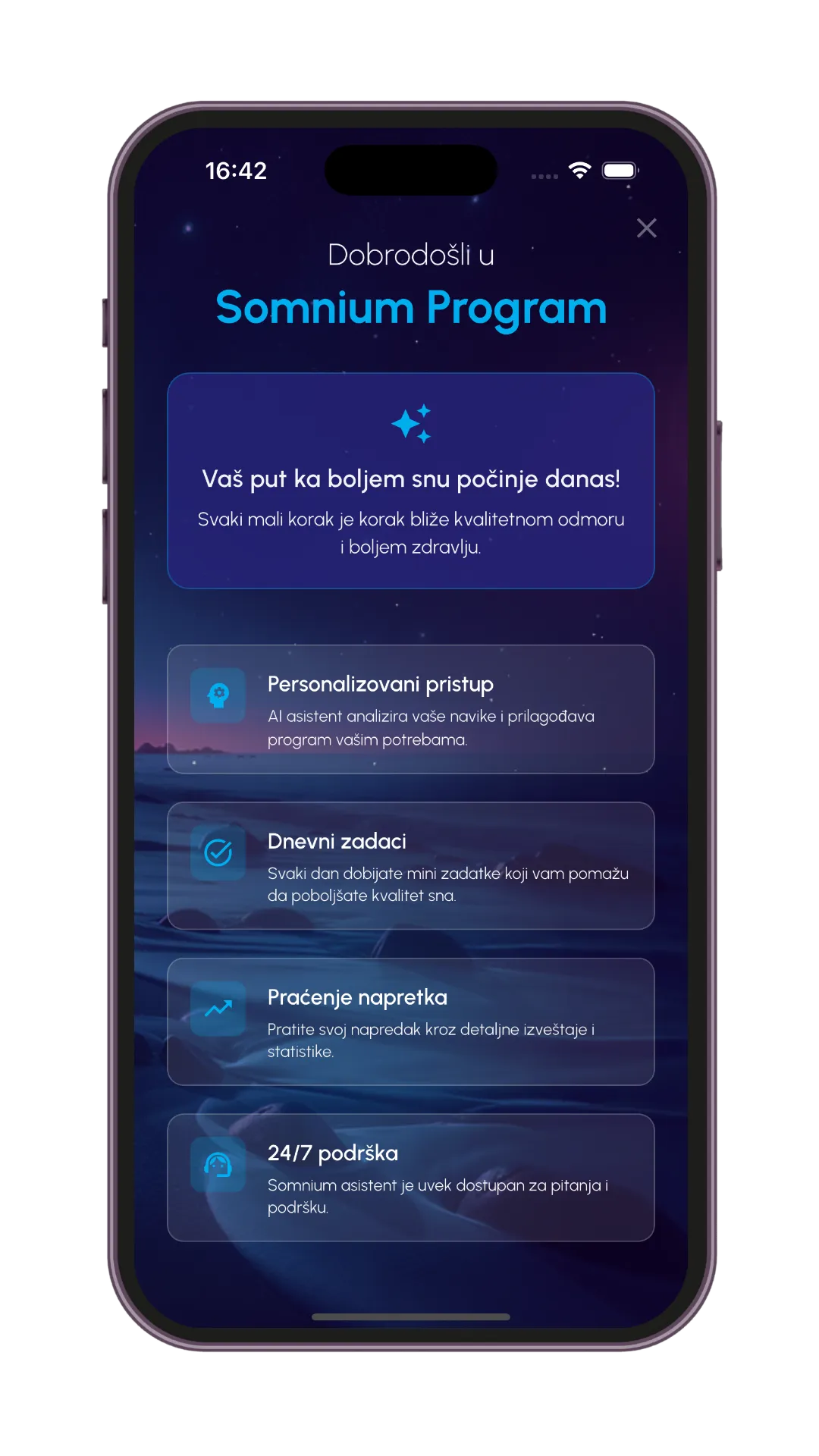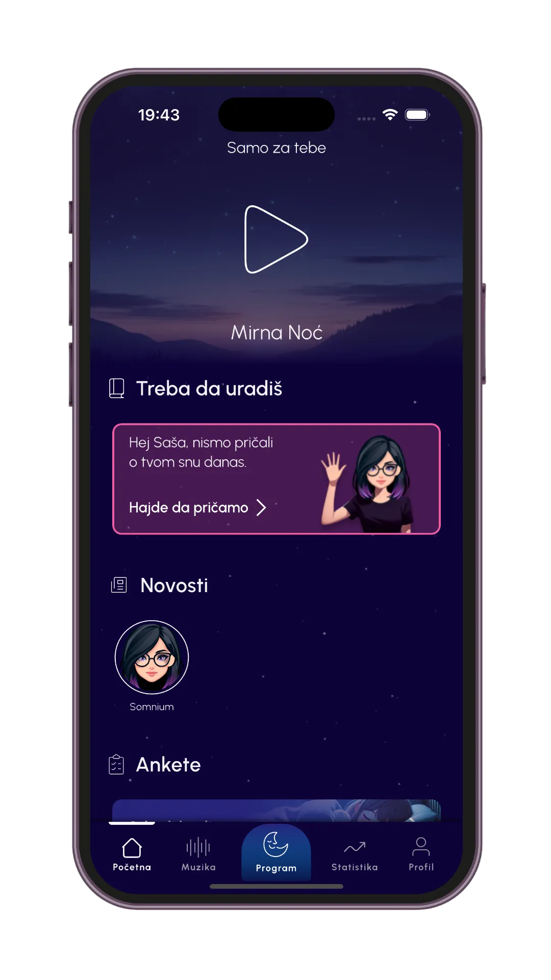Somnium Sleep is a mobile app that helps users improve sleep quality, adopt healthy habits and reduce stress through personalized recommendations, guided breathing exercises and relaxation music. It is intended for everyone who wants better sleep, more energy, and better productivity, regardless of age and current habits.